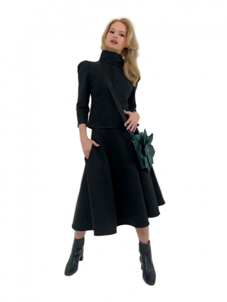 Элегантный жакет Glam от ELLA Abushkevich Design. Детали: оригинальный крой, приталенный силуэт, рукава ¾, воротник стойка, застежка - молния. Жакет выполнен из мягкой, уютной и теплой ткани, отлично держит форму и совсем не мнется. Лимитированная модель!